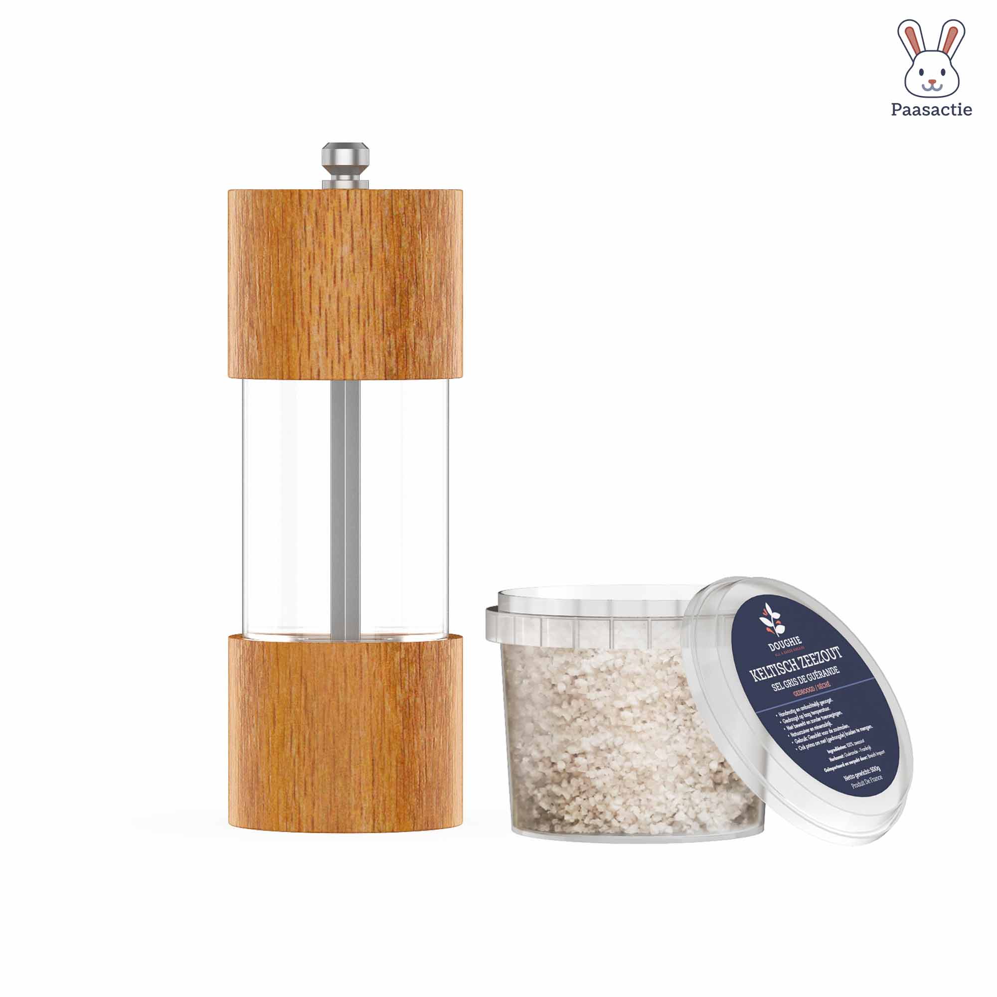 Doughie Keltisch Zeezout & Design Zoutmolen Bundel – Pure Smaak in een Stijlvolle Presentatie